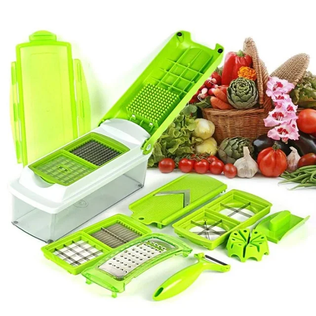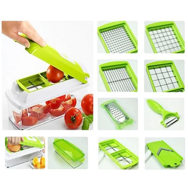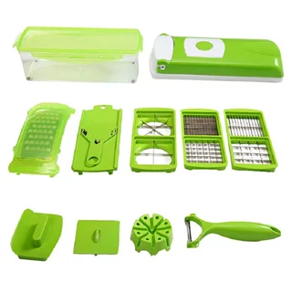 رنده همه کاره نایسر دایسر پلاس با چهار تیغه دو طرفه، برش و خرد کردن هر نوع میوه و صیفی جاتی را به اشکال مختلف آسان کرده است. با استفاده از این دستگاه میتوانید میوه و صیفی جات را به برش های مکعبی ریز و درشت، دالبری، حلقه ای، ورقه ای و همچنین چهارپر و هشت پر درآورید.مشخصات تیغه ها:تیغه مخصوص ورقه ای کردن همراه با محافظتیغه مخصوص چهار بر و هشت پر کردنتیغه خلال کردن و برش های دالبریتیغه خلال کردن و برش های مکعبی ریزویژگی ها:پلاستیک مقاومتیغه های فولادی ضدزنگانواع تیغه برای برش های متنوعدارای ظرف نگهدارنده و درپوشدارای پوست کن و دو نوع رندهمحافظ تیغه و دست به همراه دفترچه راهنماسرعت در خرد کن و آماده سازی موادغذاییاجزا:درب اصلی: دربی تیغه ها روی آن قرار میگیرد و با ضربه دست اقلام را برایتان خرد میکندظرف نگهدارنده بخشی از بدنه اصلی: ظرف شفاف که درب اصلی روی آن قرار میگیرد و اقلام پس از خرد شدن وارد آن میشوند.درب دوم: این درپوش ظرف است که میتوان آن را جایگزین درب اصلی کرد.رنده و محافظ رنده: مناسب رنده کردن پیاز، سیبزمینی و غیرهپوست کن: کاربردی برای پوست گرفتن انواع میوه ها، سیب زمینی و هویجگیره محافظت دست برای محافظت از دست ها هنگام رنده کردن4 نوع تیغه و یک محافظ تیغه