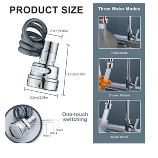 ویژگیها و مزایای سر شیر شلنگ دار ظرفشویی و روشوییافزایش فشار آب : طراحی خاص این سر شیر باعث بهینهسازی جریان آب شده و فشار خروجی را افزایش میدهد. در نتیجه، شستشو سریعتر و با مصرف کمتر آب انجام میشود.نصب آسان و سریع : برای نصب این محصول نیازی به ابزار تخصصی یا مهارت فنی ندارید. در کمتر از چند دقیقه میتوانید آن را روی شیر ظرفشویی یا روشویی نصب کنید.کیفیت ساخت بالا : جنس بدنه از پلاستیک فشرده ABS ساخته شده است که علاوه بر سبکی، مقاومت بالایی در برابر فشار آب و ضربه دارد.تجهیزات کامل همراه محصول : این سر شیر همراه با یک سری تبدیل و دو واشر پلاستیکی ارائه میشود تا نگرانی بابت نشتی یا ناسازگاری با شیر آب نداشته باشید.ابعاد مناسب : با اندازه ۵.۲ × ۵.۲ × ۸.۱ سانتیمتر طراحی شده تا فضای کمی اشغال کند و در عین حال کارایی بالایی داشته باشد.سر شیر شلنگ دار ۳ حالته با طراحی کاربردی و هوشمندانه خود، بهراحتی روی شیر آب نصب میشود و سه حالت مختلف پاشش آب را در اختیار شما قرار میدهد:حالت متمرکز: برای شستشوی عمیق ظروف و زدودن لکهها و آلودگیهای سخت.حالت پخش: پاشش ملایم و گسترده، مناسب شستن میوهها، سبزیجات و دست و صورت.حالت ترکیبی: ترکیبی از فشار و پخش برای زمانی که به قدرت و پوشش همزمان نیاز دارید.وجود شلنگ انعطافپذیر در این محصول امکان شستشوی کامل اطراف سینک یا روشویی را بدون نیاز به وسایل اضافی فراهم میکند.